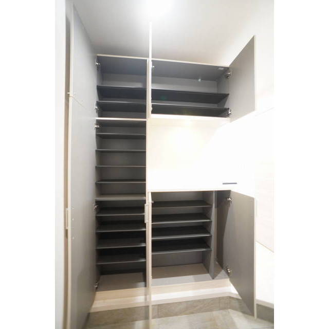 エレベータ / 宅配BOX / オートロック / 都市ガス / エレベータ / 電気 / BS端子 / ダブルロックドア / ディンプルキー / バルコニー / フローリング / シャッター雨戸 / 室内洗濯機置場 / 室内物干し / クローゼット / ウォークインクローゼット / シューズボックス
